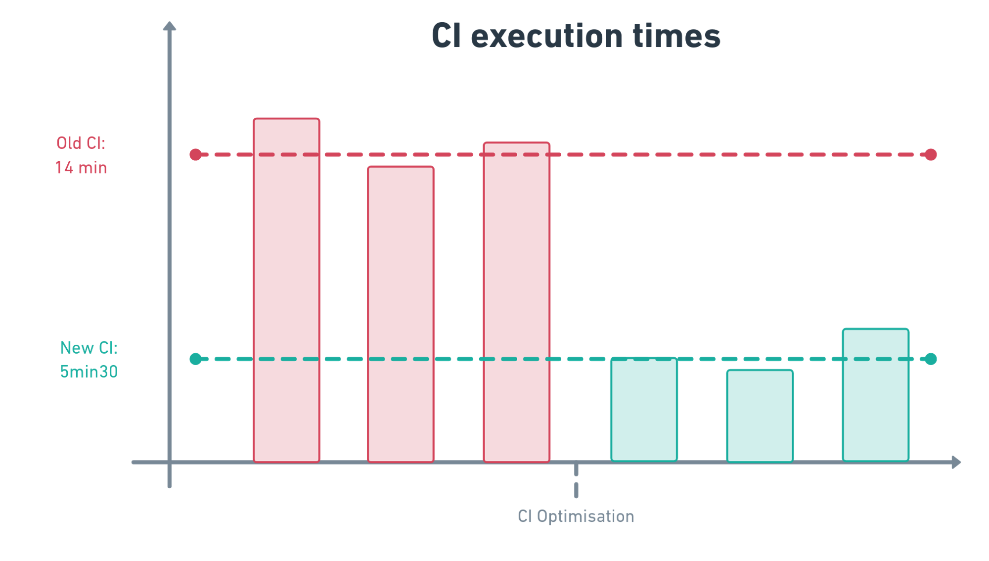 Nous avons réalisé un gain de 8min 30 minutes sur notre CI et 7 min sur notre CD.