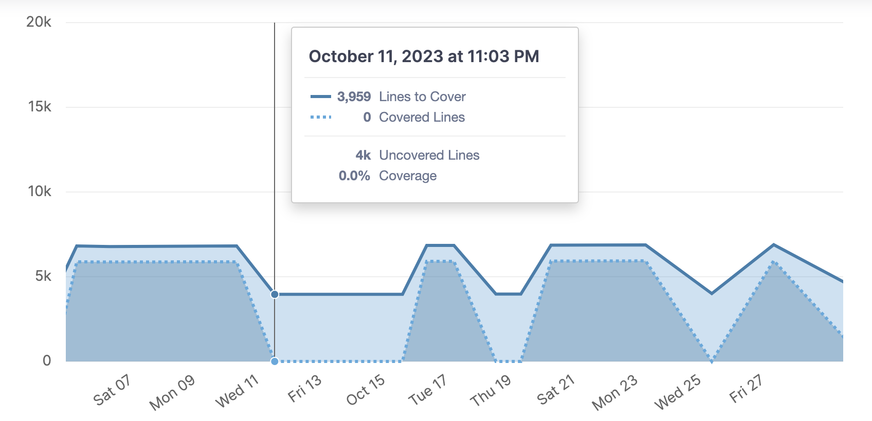 Vous auriez raison de souligner que le job SonarQube dépendait du job de coverage et que cette nouvelle disposition doit donc avoir un impact négatif ! En effet, SonarQube utilise le taux de coverage calculé pour mettre un jour un graphique. Dans la nouvelle configuration, le taux de coverage tombe à 0% lorsqu’une CI est exécutée 😢.