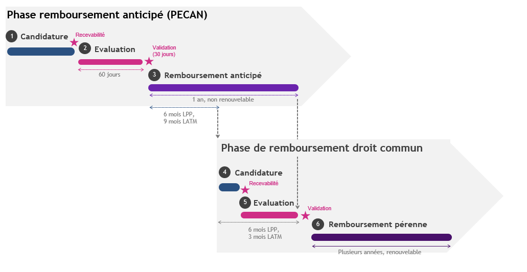 Lorsque le fabriquant a déposé sa candidature, une feuille de route claire avec une validation sous 60 jours et l’accès au remboursement anticipé pendant 1 an.