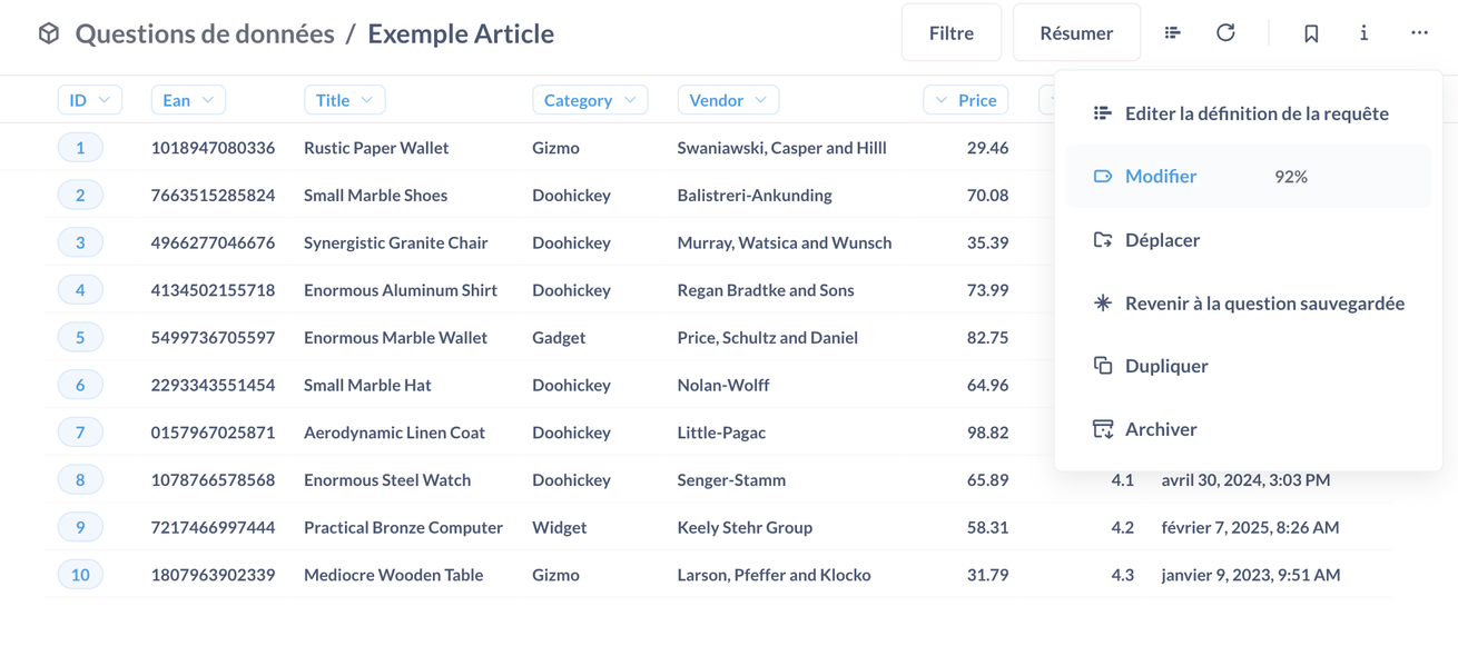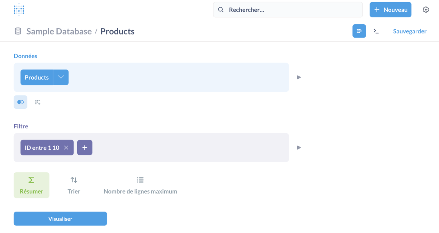 - Visualisation : Vous pouvez visualiser les questions en exécutant la requête directement dans Metabase.