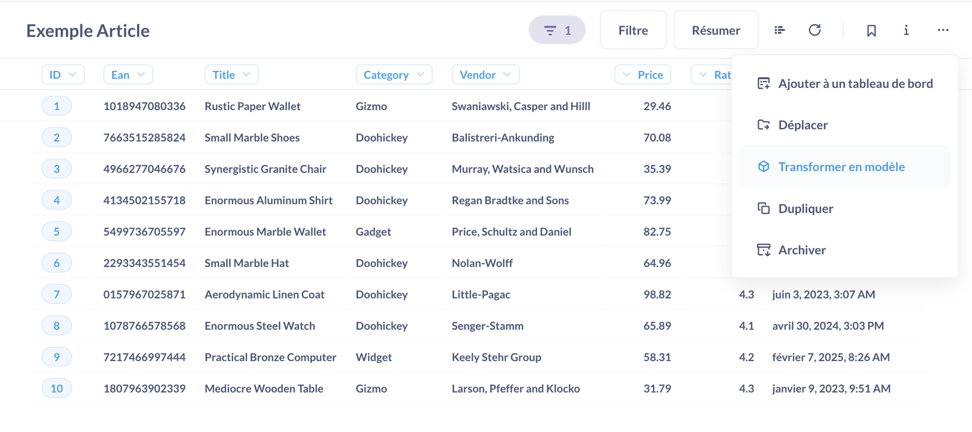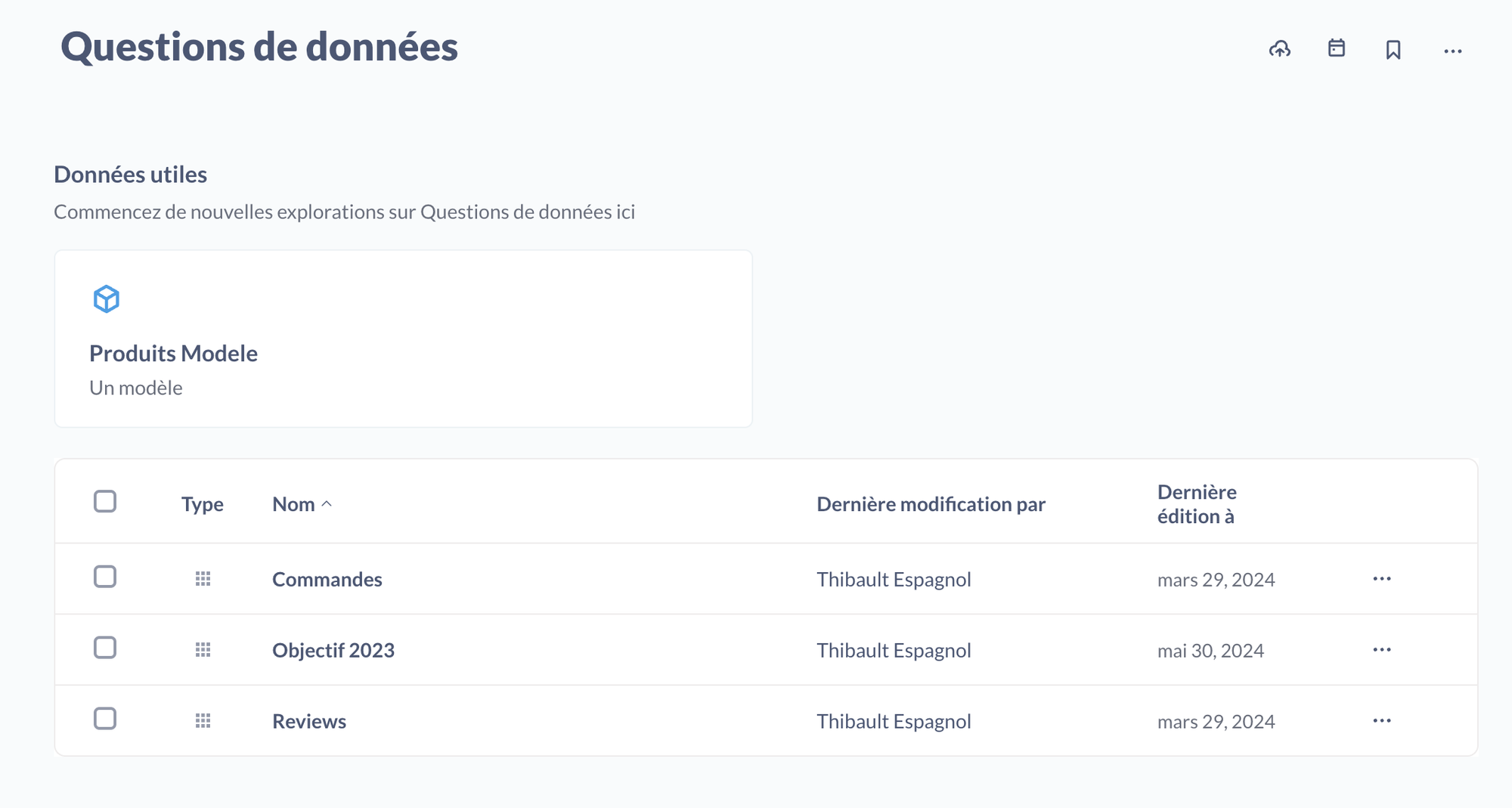 La meilleure pratique est de créer des modèles pour centraliser les filtres et les transformations. En effet, il est préférable de créer un modèle par périmètre/tableau de bord, puis chaque question de votre tableau de bord commence à partir de ce modèle afin que tous vos filtres ou transformations proviennent du même endroit.