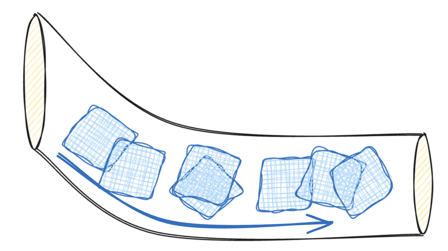Voyez ça comme une bouche d’évacuation suivie d’un autre robinet. Quand les glaçons arrivent, ils rentrent dans le premier tuyau. Si d’autres premiers glaçons arrivent, le contenu actuel est vidangé.