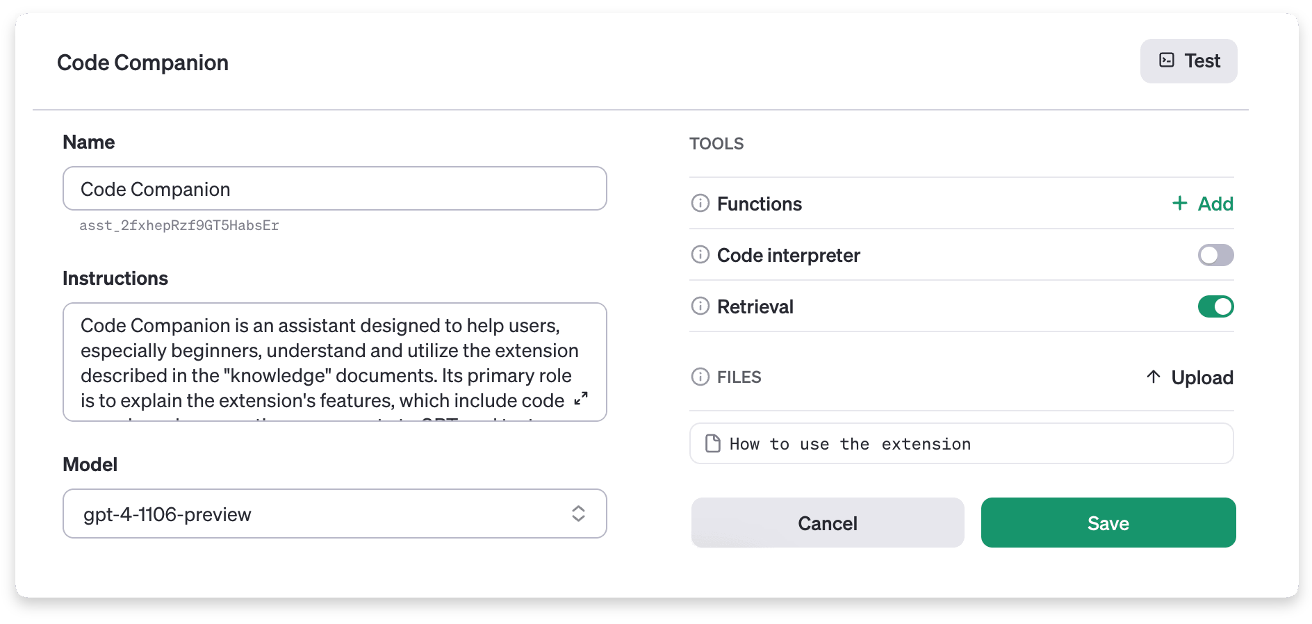 Once you are satisfied with the results, you can add your brand new assistant to your app.