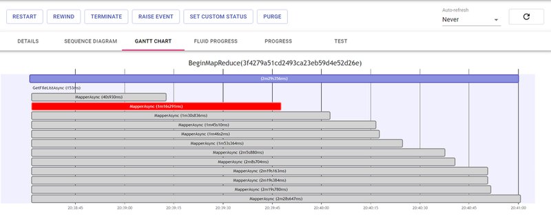 Orchestration-level visualisations such as the GANTT chart can provide real insight on the state of an orchestration, and help for debugging:
