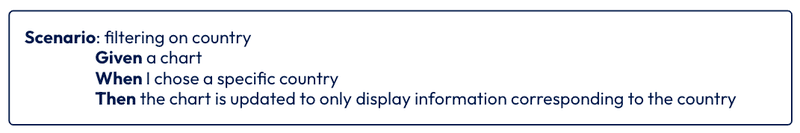 - The end user detects a new filter to be added: As a user, I want to be able to filter my charts on a specific country.