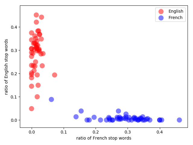 Building an AI is often a mix of Human Expertise (Business Knowledge) and Computer Intelligence (Machine Learning). In this example, I used Human Expertise to choose how to build my vector thanks to French and English stop words. I could have also used Machine Learning to train a model to either build a corresponding vector (Step 2) or learn the classification out of more complex vectors (Step 3).