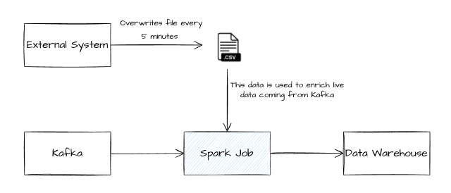 We are setting up Spark pipelines ingesting live data from sensors in micro-batches with the Spark streaming API. Each micro-batch needs to be enriched with slowly evolving data, made available in a csv file which is regularly overwritten by an external process. The csv columns will remain the same but entries can be modified and new lines can be added.