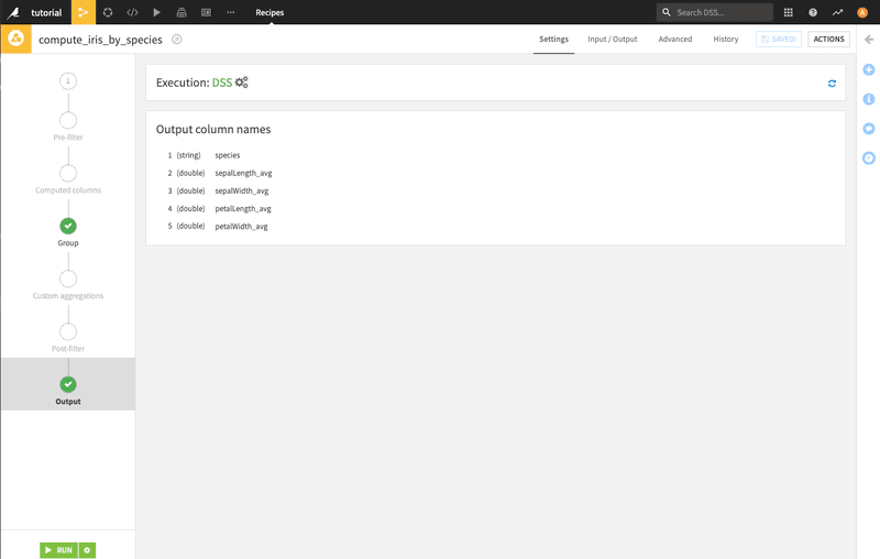 And in the Output section, you can see the name of the newly created columns (you can even rename them). Then, click on run to build the dataset:
