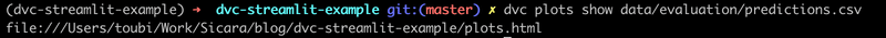 Very nice! When running dvc plots show data/evaluation/predictions.csv, DVC does the following: