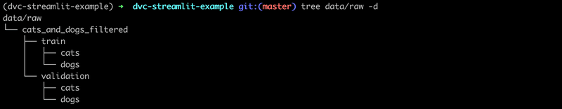 Then, after you executed the first stage (run dvc repro dvc.yaml:download_dataset), you’ll see in the data/raw folder train and validation splits but no test subset: