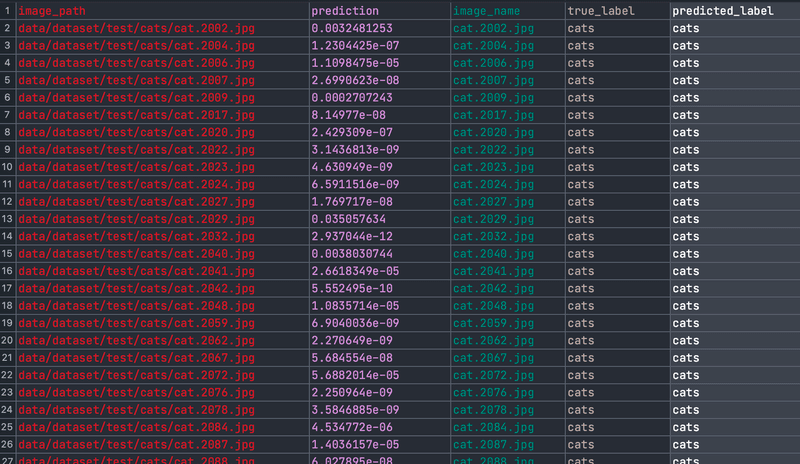 If you remember the Cat vs Dog classifier pipeline I introduced in part I, the evaluation stage outputs a data/evaluation/predictions.csv file containing model predictions on the test set.