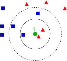 In the following case, if K = 3, the algorithm will predict a triangle, if K = 5, the algorithm will predict a square. Thus, the choice of K is quite important.