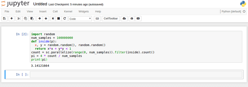 count = sc.parallelize(range(0, num_samples)).filter(inside).count()