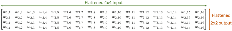 We can mock a 3x3 convolution kernel with the corresponding fully connected kernel: we add equality and nullity constraints to the parameters.