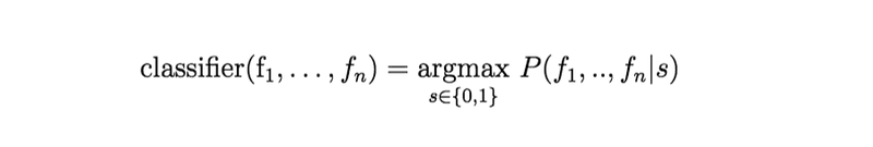 Finally, to classify a new vector of features, we just have to choose the Survivalvalue (1 or 0) for which P(f_1, …, f_n|Survival) is the highest: