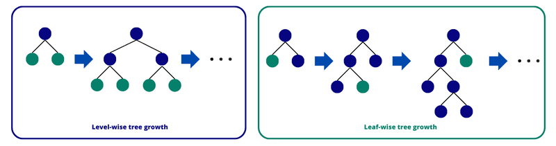In most gradient-boosting algorithms, the level-wise strategy, which grows the tree level by level, is computed. In this approach, each node splits the data, giving priority to nodes closer to the tree's root. However, LightGBM uses the leaf-wise strategy. It optimally selects the leaf with the most significant loss reduction. It leads to the creation of deeper and more expressive trees by dramatically increasing tree depth, especially in high-loss regions. This approach accelerates training by expanding fewer nodes, making it faster than traditional gradient-boosting algorithms.