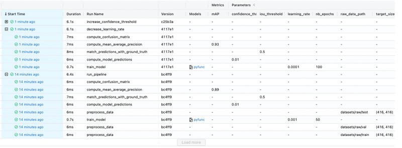 And that’s how you get a wonderful dashboard representing the different iterations tried on your pipeline and its stages: