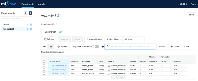 - Some features are missing. In particular, there is no possibility to create nested runs—an MLflow feature that I’m going to describe below