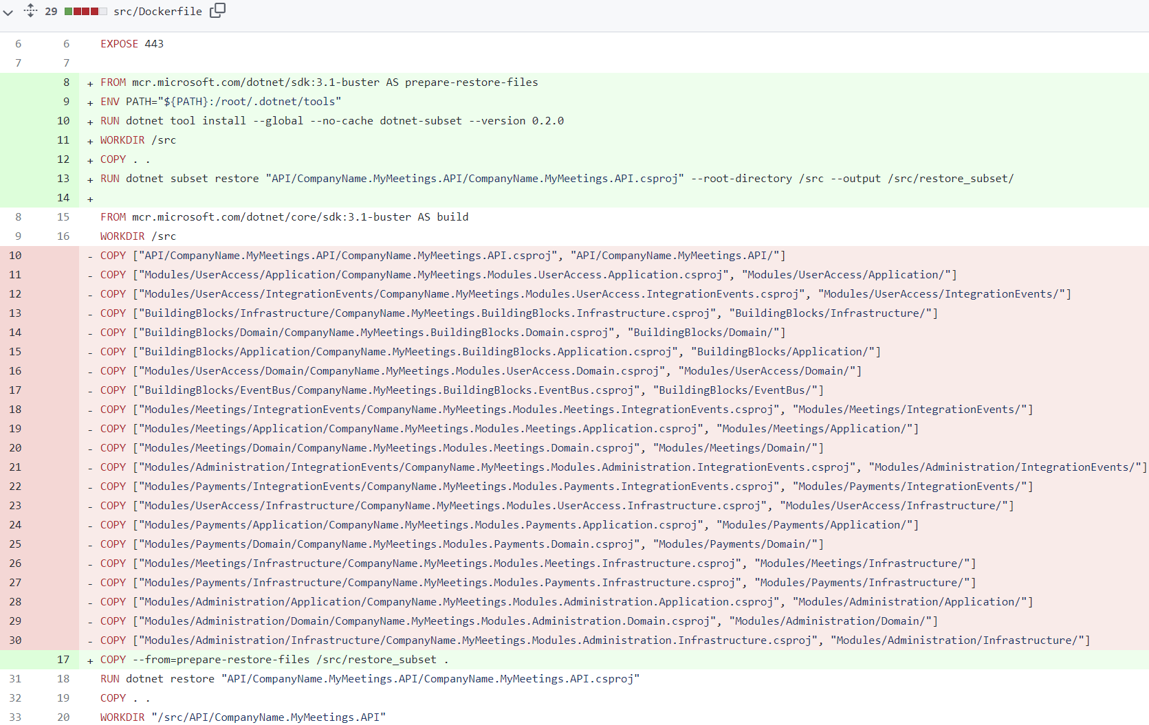 Do you remember the huge Dockerfile I mentioned earlier ? Let's appreciate how it became neater thanks to dotnet-subset (PR link):